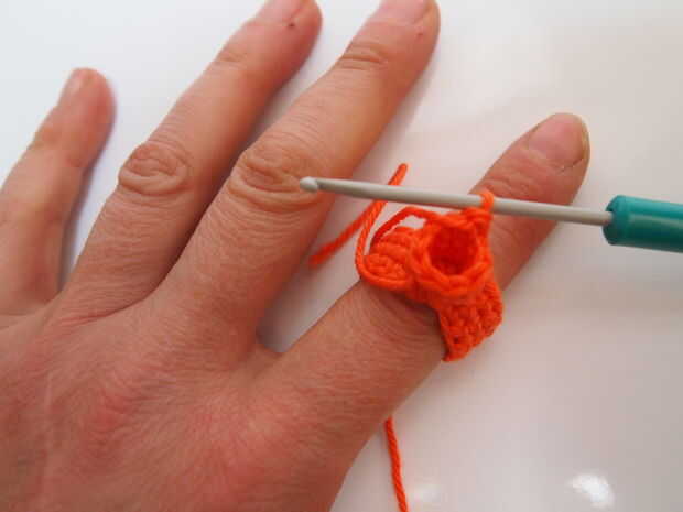 Echa un vistazo en el anillo de la parte superior e imaginar la corona que va a "subir" en la tapa del anillo. Esto ayuda a entender que necesita que se dirige el trabajo del anillo de ganchillo en dirección casi opuesta.