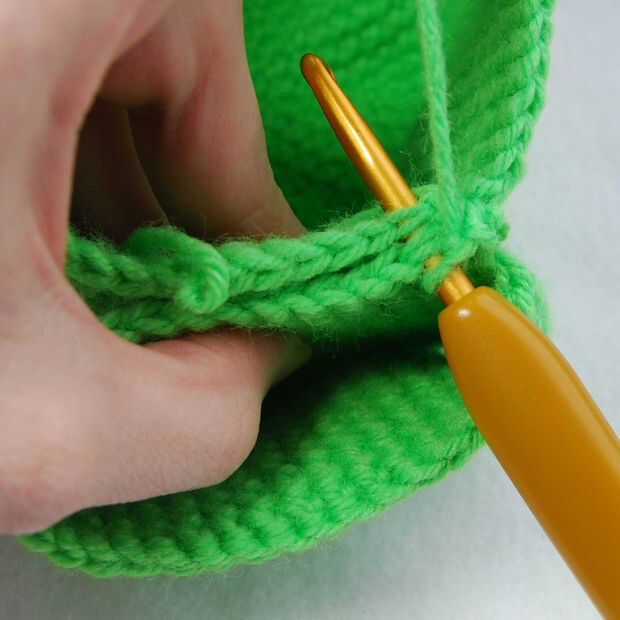 Colocar marcador de puntada en siguiente ST y continuar a SC por la boca superior solamente. Al llegar el lugar donde usted se unió a la boca superior e inferior, saltar hasta la boca del cañón inferior y otra de trabajo en la parte inferior de esta pieza. En el momento de que llegar el marcador de punto, debe tener un gran círculo que va todo el camino alrededor de la cabeza.