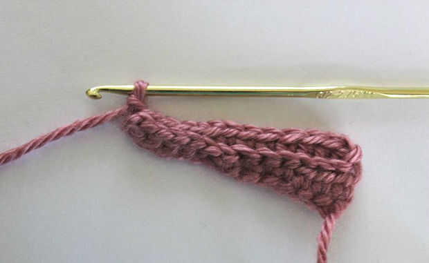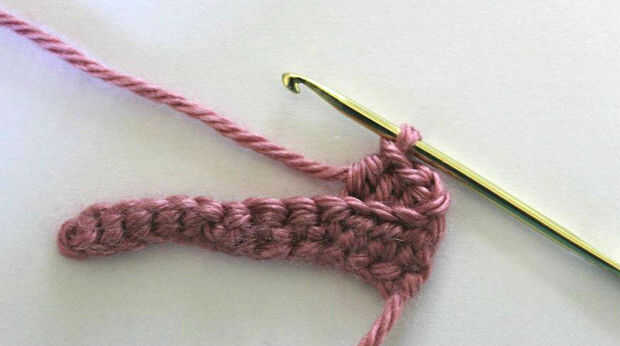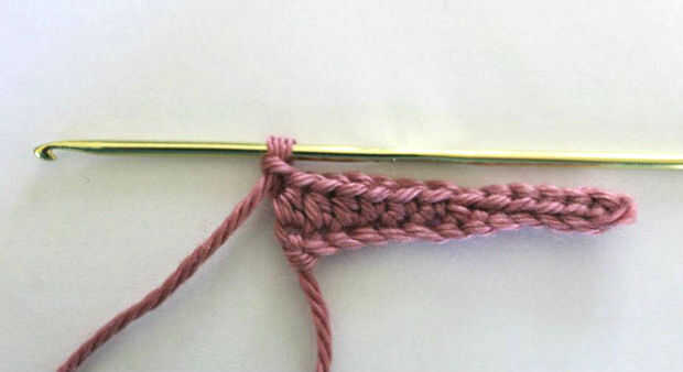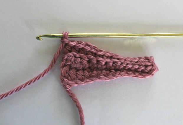 Fila 3: Vuelta, sl st en próximos cinco sts, sc en los siguientes cuatro, hdc en próximos tres.