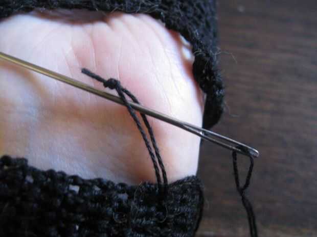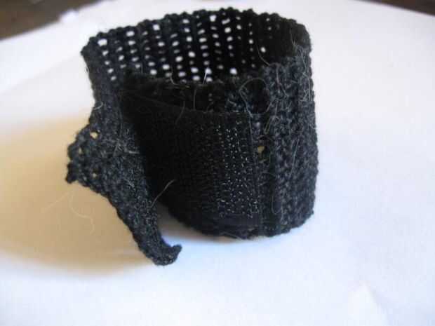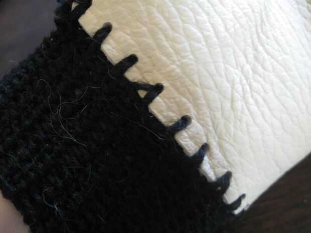 Comience con el guante de su mano no-dominante o encontrar a alguien con manos de tamaño similares a un mannequine. Ponga el guante y la pulsera alrededor de la muñeca. Uso aguja de coser grande con ganchillo hilo para atar la pulsera con el resto del guante mientras están en mano. Proceda a poner al revés el otro guante en la mano no dominante. Prestar atención al espejo la pulsera también.