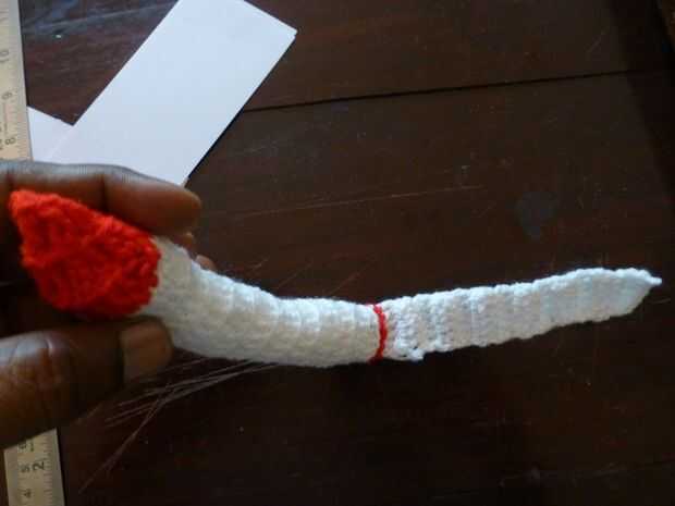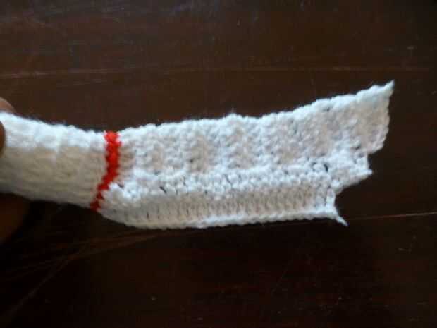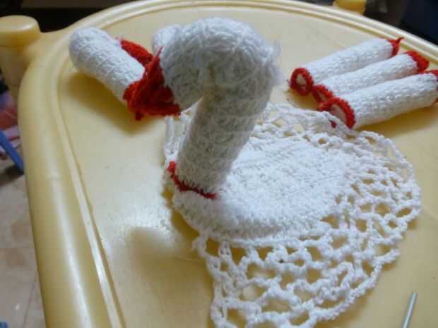 • A partir de la parte de acabado del cuello del cisne y del ganchillo 2 centímetro de ancho por parte de centro largo de 10 centímetros