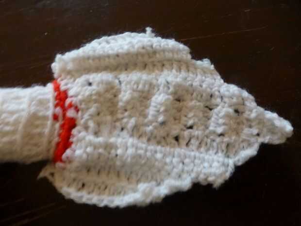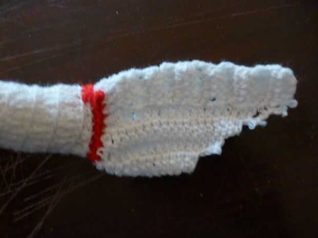 • Añadir alas de 5 cm en los lados del cuerpo acabado en seis filas con 24 espacios