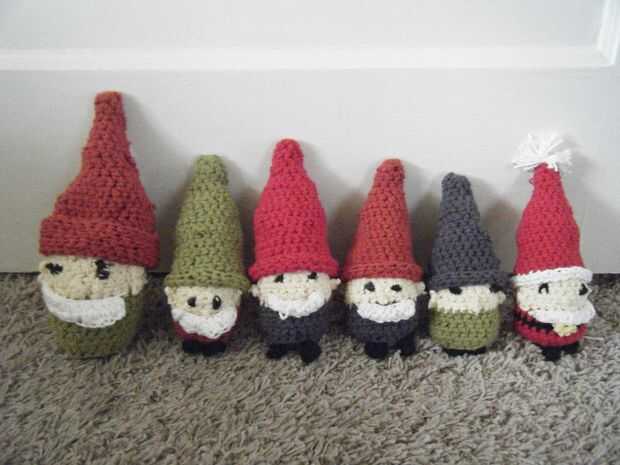 Tengo un libro de la biblioteca llamada "Once Upon a Time... En Crochet"de Lynn Rowe. Tiene algunos grandes proyectos, pero cuando hice los siete (o seis, hasta ahora) enanos, resultaron mayor de lo que me hubiera gustado (y más grande que el patrón dijo que harían) Un "gran enano" es algo contradictorio, por lo que he modificado para hacer lindos pequeñitos (también incluye instrucciones especiales para la fabricación de un gnomo de Santa). Sus cuerpos y sus sombreros son cada uno de aproximadamente 4 pulgadas de alto. Todos ponen juntos, van hasta 7 pulgadas. Se puede doblar el sombrero hacia abajo, también.