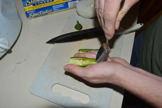 Para la semilla, simplemente raspar el interior de la jalepeno con una cuchara pequeña.