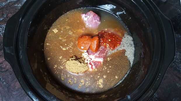 Añadir el caldo de pollo, 1/4 taza salsa de soja, 1/4 taza de vinagre de arroz, salsa de pescado, pasta de curry rojo tailandés, jengibre, sambal oelek, jugo de 1 limón, polvo de China cinco especias, pimienta negra y 1 cucharada de azúcar morena. Revuelva bien para combinar todos los ingredientes.