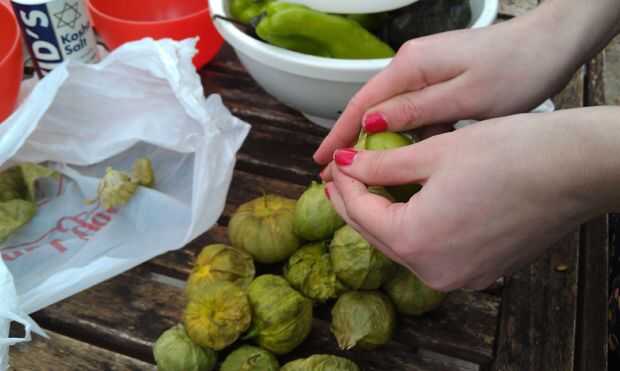 Quitar las hojas exteriores de los Tomatillos y enjuague bien. Untar ligeramente con aceite y reservar.