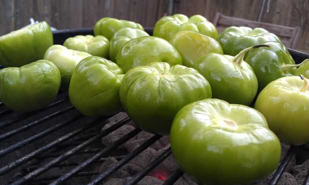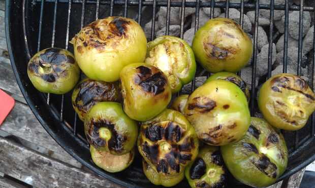 • Colocar tomates en la rejilla directamente sobre los carbones.