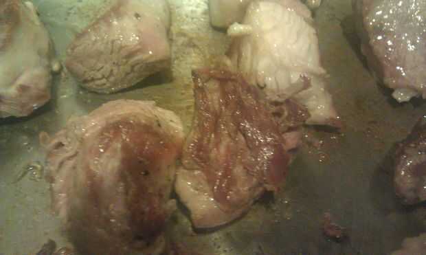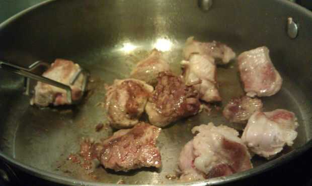 Trabajando en pequeñas cantidades, teniendo cuidado de no a la bandeja, marrón el cerdo.