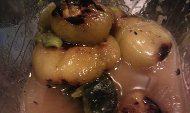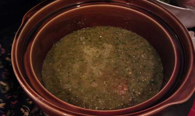 Trabajar en lotes, lugar todo asado tomates, pimientos, cebollas, ajoy 1/3 del Caldo de pollo en una licuadora o procesador de alimentos. Agregar cominoy Cayenafresco Cilantro. Pulso hasta mezclado pero aún grueso. Verter sobre el cerdo en Crockpot. Repita para las verduras restantes.