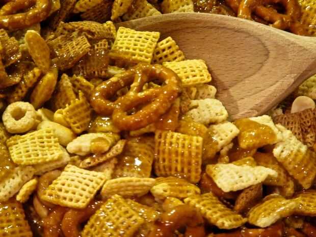 Este delicioso aperitivo, "Mutt Chow", es fácil de hacer y atractivo para todas las edades. Si usted está buscando un bocado dulce y salado para tu familia o servir en una fiesta, esta mezcla toma menos de 20 minutos para preparar y es difícil d