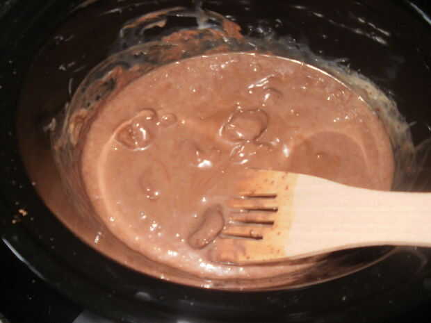 lento Fudge caliente cocina mantequilla de maní con leche pastel* Rinde 6 porcionesINGREDIENTES:Torta:1 taza de harina para todo uso2 cucharadas cacao en polvo sin azúcar1/2 taza azúcar1 ½ cucharaditas de polvo de hornear1/8 cucharadita de sal1/2 taz