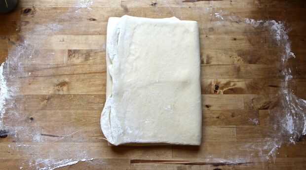 - A partir de la parte inferior, doble la masa en tercios para formar un cuadrado de 8".