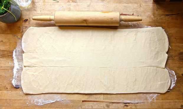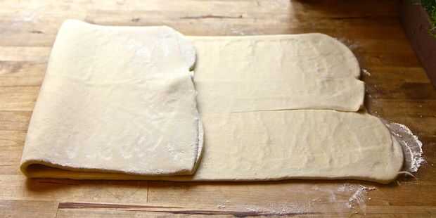 - Utilizando el rodillo, extienda la masa hasta que quede un rectángulo 10 "x 17" tamaño. Lo largo de su rectángulo (17") debe ser paralelo con tu contador, si no es así, gire la masa.