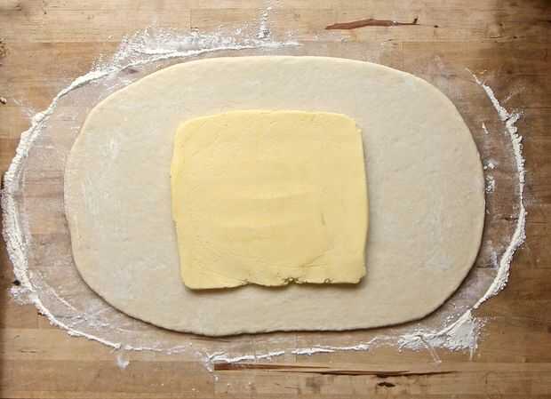 Este proceso se llama laminar la masa y es una técnica esencial en la creación de las masas de pastelería escamosa y aireado. El proceso implica el sellado de una capa de mantequilla en la masa y luego alternando capas de mantequilla y masa a través de constante balanceo y giro (plegamiento de capas). Las capas más creas en su masa el flakier será su masa. Esto funciona porque la mantequilla se compone de agua y grasa de la leche. Como la masa se calienta, se evaporará el agua con la mantequilla, creando vapor y una bolsa de aire entre las capas de masa. La grasa de la leche se filtran en la masa y darle no sólo un sabor mantecoso que todo el amor, pero le ayudará a hacer su masa dorada.