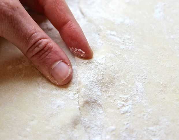Retire la masa del congelador y transferencia a una superficie ligeramente enharinada.