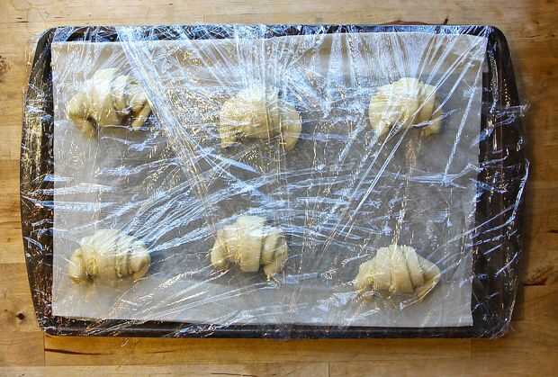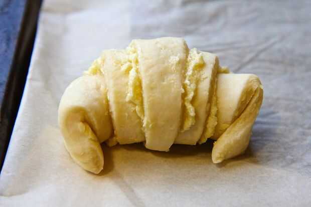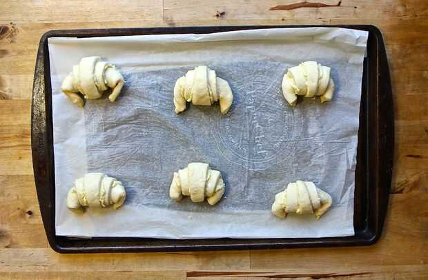 - Lugar su forma croissant en una bandeja forrada con papel de cera de 2 1/2 pulgadas aparte.
