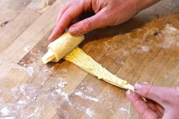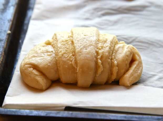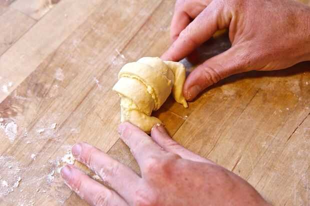 - Forzar suavemente los puntos laterales de tu croissant en forma de media luna presionándolos.