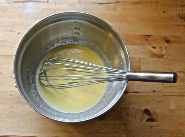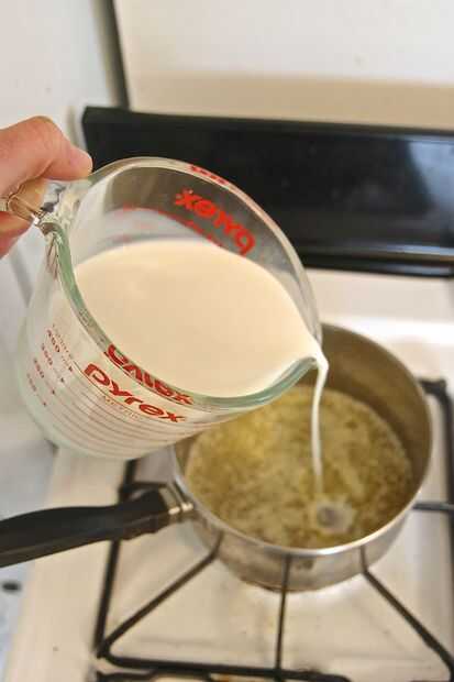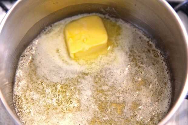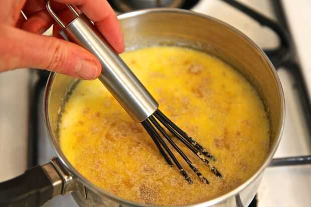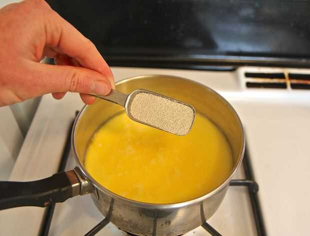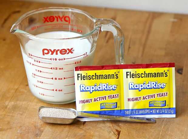 Derretir 3 cucharadas de la mantequilla en una cacerola pequeña a fuego bajo. Una vez que toda la mantequilla se haya derretido, retire la cacerola del fuego y vierta inmediatamente en la leche entera. Mezclar brevemente para incorporar. Añadir sus 4 cucharaditas de levadura aumento rápido o instantánea. Bate hasta que se mezcle bien.
