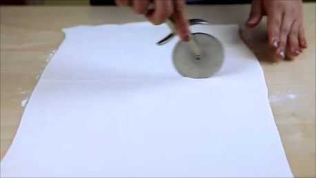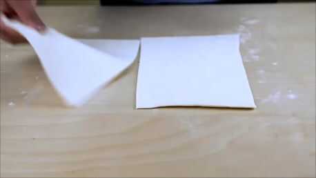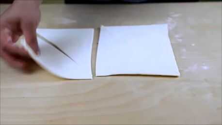 Cortar la hoja en 8 pedazos. Vea el Video de la receta para entender mejor este paso.