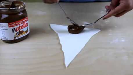 Poner una cucharadita de Nutella en cada pieza.