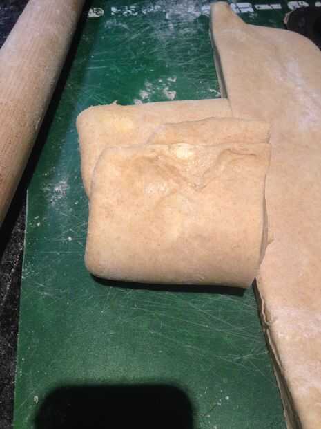 Después de la nevera, puede seguir adelante y repita los pasos anteriores para 2-3 vueltas más. Todas las vueltas y pliegues crean las capas escamosas de su croissant.