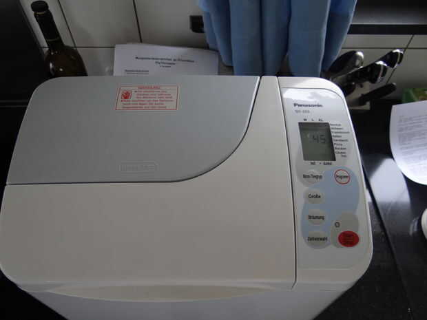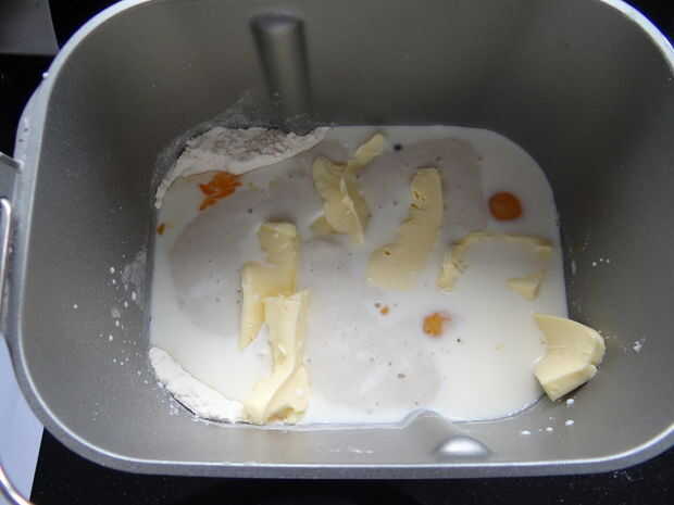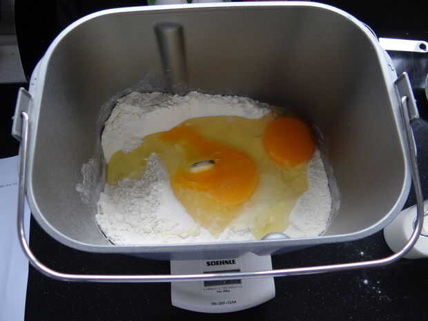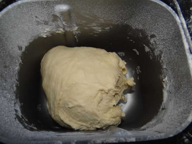 Añado todos los ingredientes y deje que se mezcle y amase en mi panificadora.