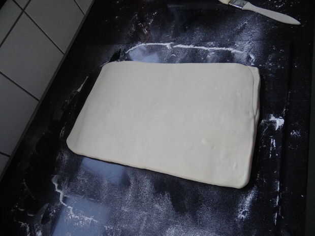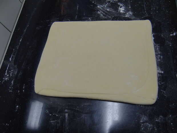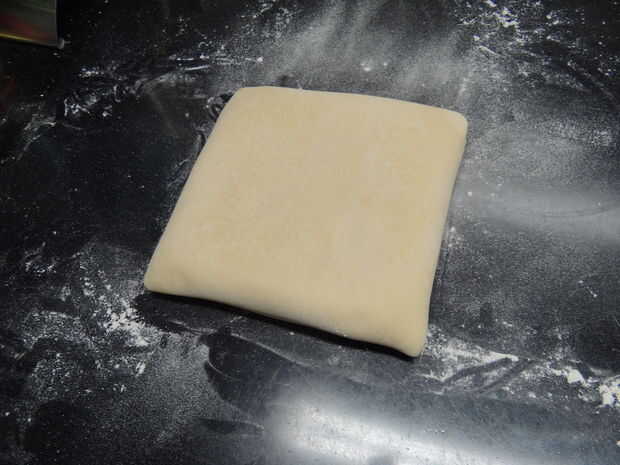 El cuadrado de mantequilla es aproximadamente 5 pulgadas (12,5 cm), la masa es un poco más grande. (Imagen 6)