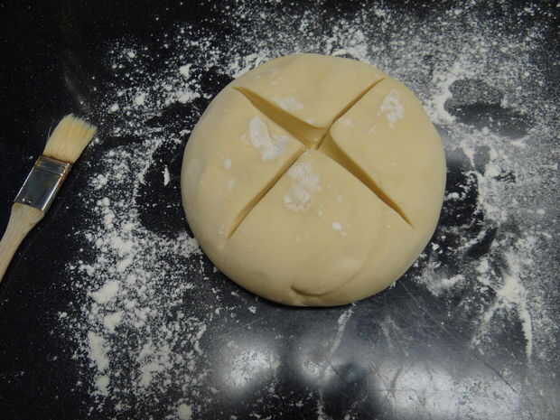 Sacar la masa del recipiente y cortar una cruz sobre una pulgada (25 mm) de profundidad.