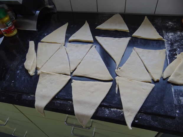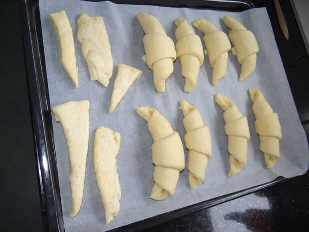 Yo había salado los pedazos restantes de masa de desecho y había respaldado con los croissants. Esto se llama "Flauta de cava".