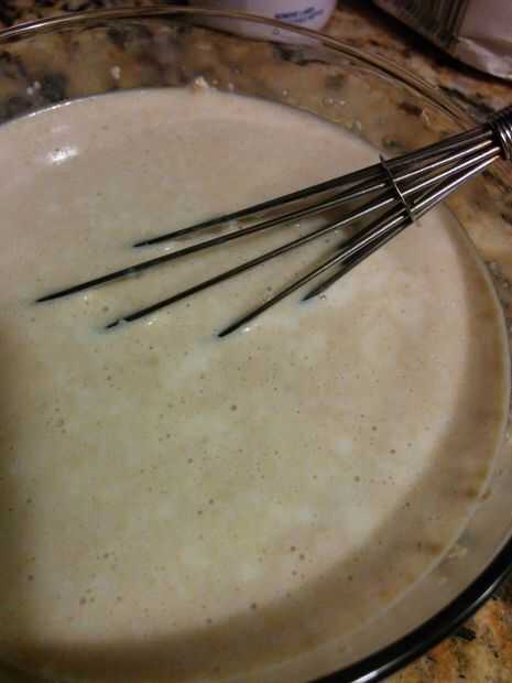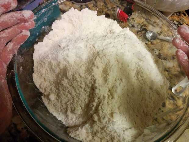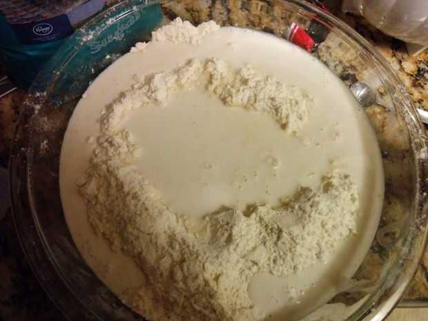 4. Vierta la mezcla de leche/levadura en la harina y de mantequilla.