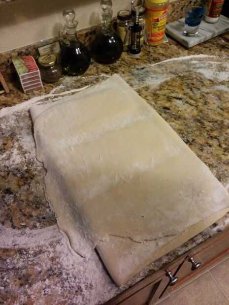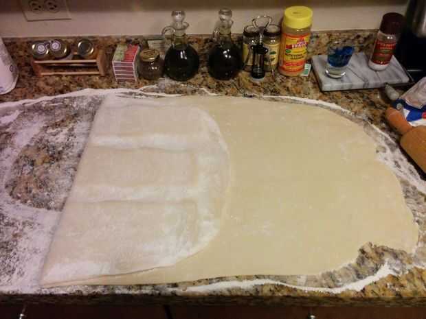 Notas: Es importante que la masa a refrigerar durante un completo media hora. Se trata de dejar que la mantequilla chill para no fundirse en la masa como se extienda. Intenta hacer láminas delgadas de papel de mantequilla entre láminas delgadas de masa y el frío ayuda a ellos alojarte separadas en esas capas agradables.