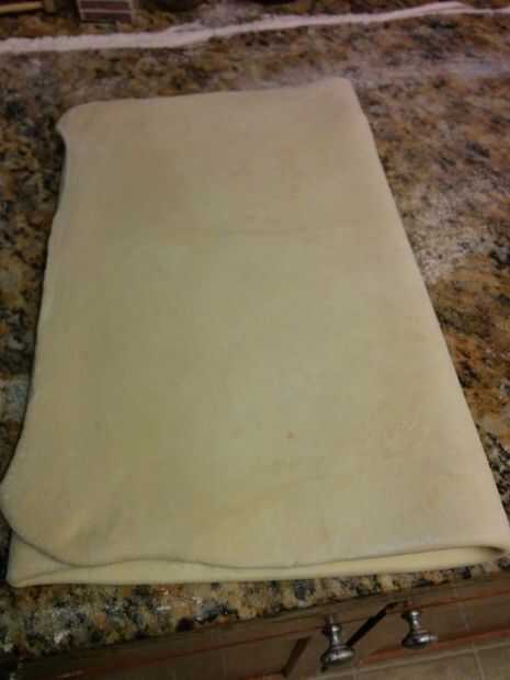 Después de haber doblado la masa tres veces usted puede ya sea chill media hora y mover directamente a formar, refrigerar durante la noche luego cuece al horno, o para envolver firmemente y congelar por hasta un mes.