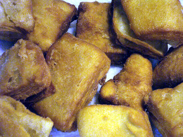 (kwa sen yay, rima con blanco), mi híbrido de un croissant y un beignet.