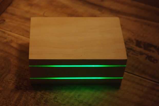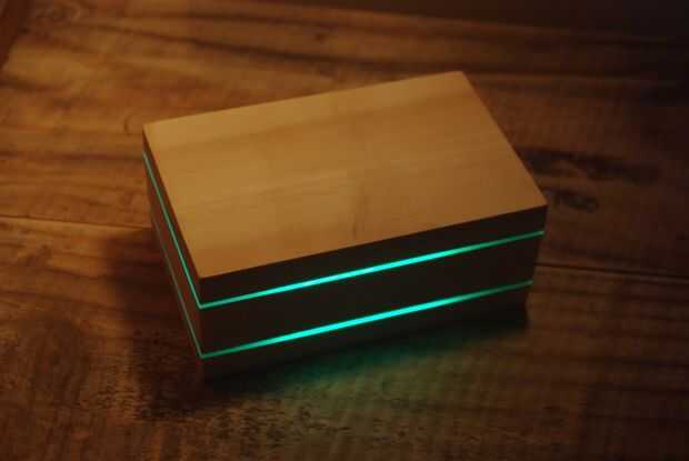 croma es una caja de doble borde encendido controlada de la aplicación; posible por las capacidades de iluminación de borde de acrílico.