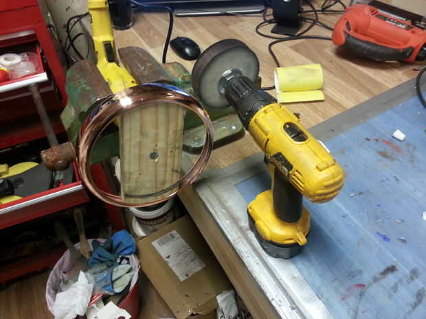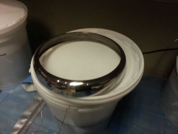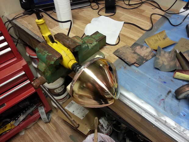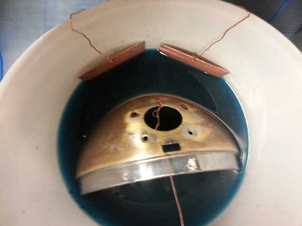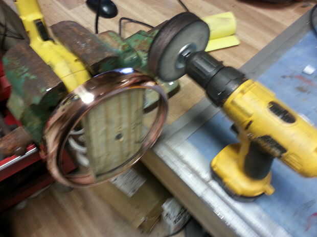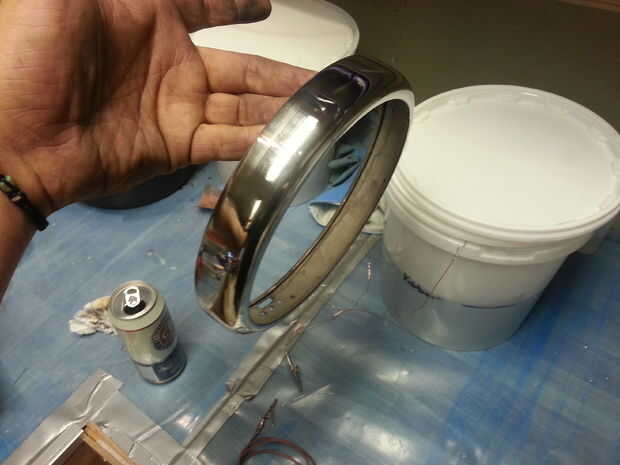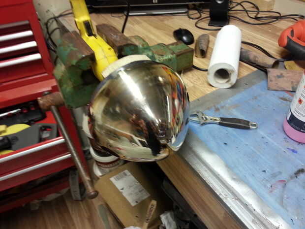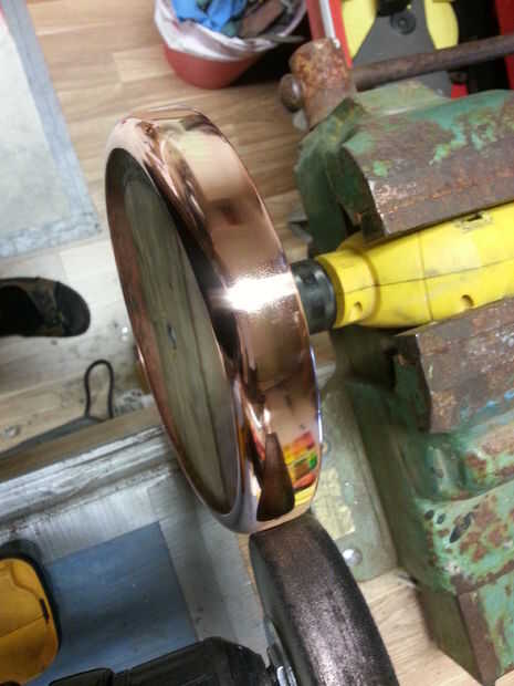 La tira de cromo viejo. (Chorro de arena y si es posible) Obtener una superficie lisa, utilizando papel de lija grueso fino. Una capa de cobre de la placa. Abolladuras/grietas de la soldadura. Pulir la soldadura. Placa con otra capa de cobre. Empezar a pulir y obtener el superficie espejo, usando compuestos derecha y derecha discos de fieltro. Limpie y enjuague (ver paso anterior) Entonces cerradero con níquel. Buff el níquel para un espejo como superficie. (Lo que ves es lo que obtienes finalmente después de cromo) Limpie y enjuague Placa con cromo. Buff y polaco... Terminado...!