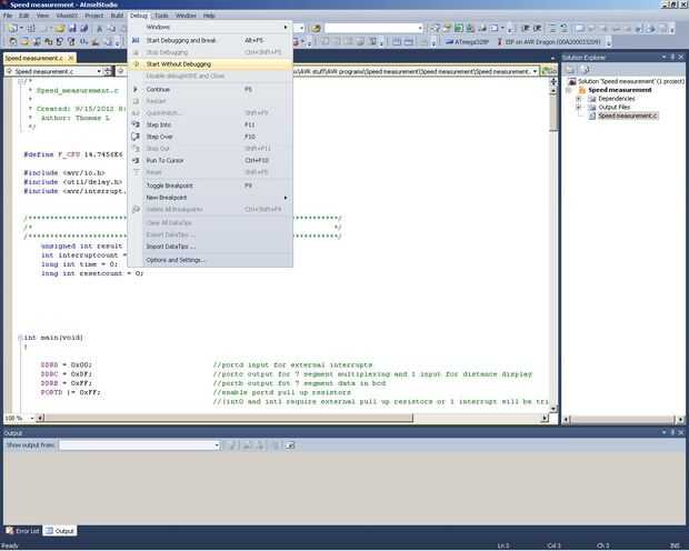 Ahora a cargar el programa al chip. Puede haga clic en herramientas >> Programación de dispositivo >> archivo de producción y luego busque el archivo y el programa. ¡ Pero! Es mucho más fácil simplemente haga clic en Debug >> iniciar sin depuración (Foto 3). Automáticamente Recompila el programa y lo carga al chip sin otra palabra como no hay rerrors compilación.