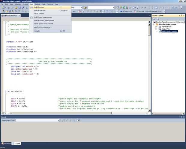 En este punto, verás un montón de cosas pasan en la ventana de salida en la parte inferior, y si hay algún error de compilador te ves aquí también. Si escribió el código exactamente como en el ultimo paso no debería tener ningún error. Por si acaso, voy copiar y pegar el código en su totalidad directamente desde mi archivo al final de este paso. Sólo representé fuera que puedo subir archivos también, así que incluí un archivo ZIP con todos los archivos de estudio de ATMEL.