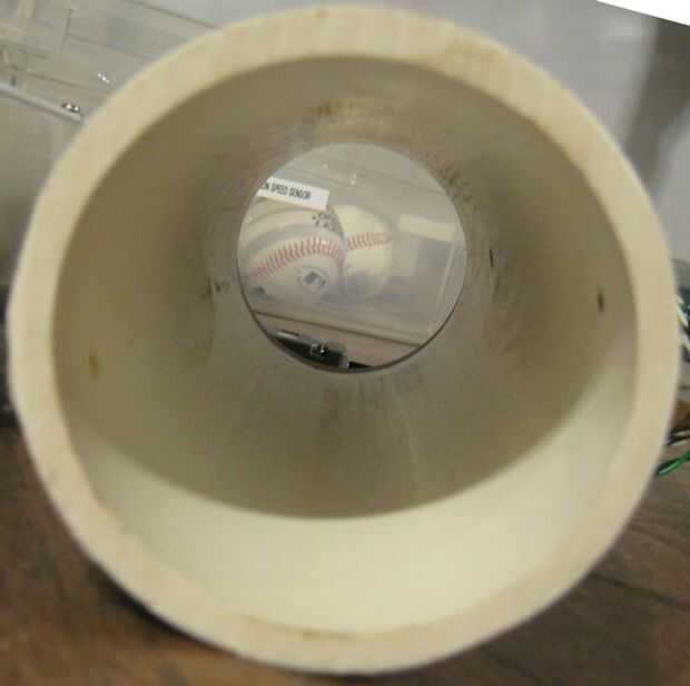 El LED y el fototransistor se montan en los orificios perforados en el lado de la tubería. Debe tener cuidado para conseguir el par bien alineado. Tanto el eje de lo LED y el fototransistor correspondiente debe mentir en una línea a través del diámetro de la tubería. El LEDs y los fototransistores no deben sobresalir en el interior de la tubería, o serán destruidos por el proyectil. Están asegurados en su lugar con pegamento caliente.