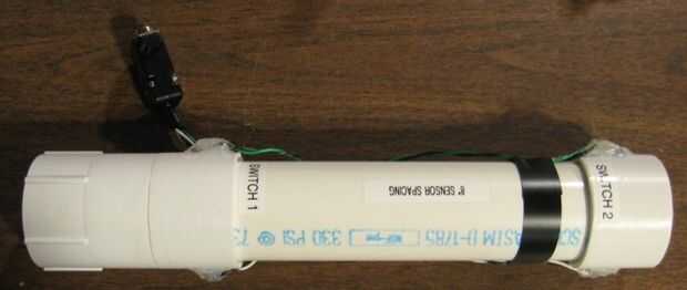 La última foto muestra otro montaje del sensor, para un cañón de aire con 1.5" barril de diámetro. Es esencialmente el mismo concepto como el sensor de diámetro de 3".