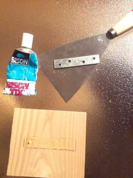 Cuando inicio, pegar las placas de acero / hojas en la parte posterior de la tabla de madera.