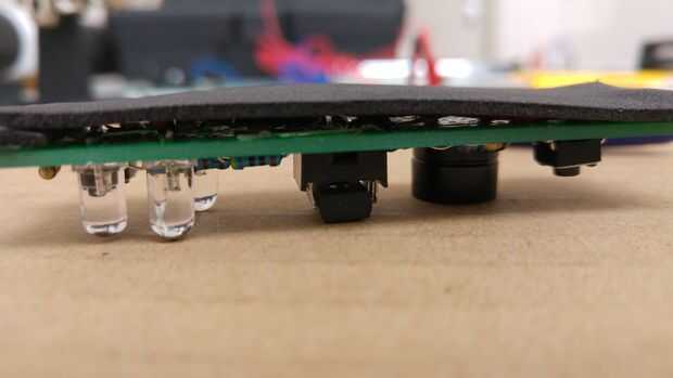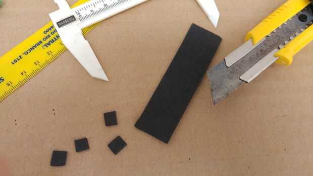 • Corte algunos EVA plazas, para funcionar como un "tope". Pegamento caliente. Luego, cortar un rectángulo del tamaño de la PCB para aislar y proteger la soldadura. Caliente pegar otra vez. La cuarta foto muestra el resultado final;