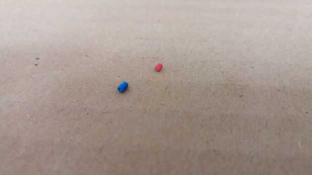 • Tira un poco del hilo para que puedas obtener un pequeño pedazo de plástico aislante. Ponga éstos en las cabeceras de la batería para no invertir los lados de la batería. Utilice las pinzas;