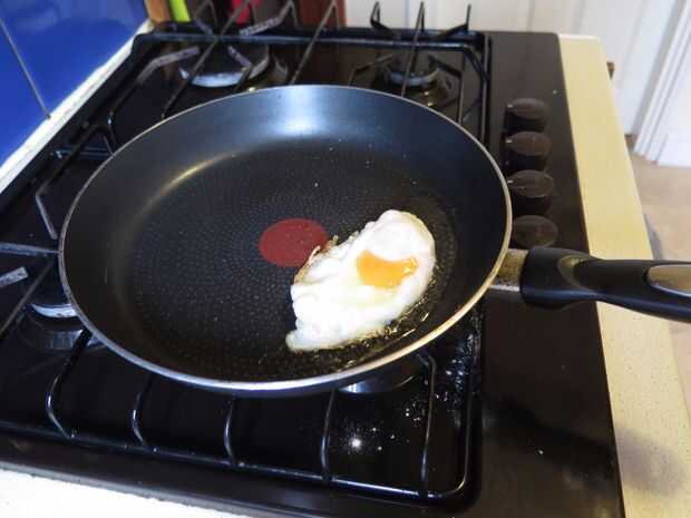Cuadro 3. una vez que ha establecido la base puede bajar el calor y permitir que el huevo permanezca plano.