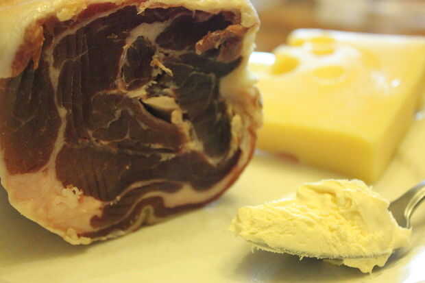 Jamón - rebanada finamente - aproximadamente 2 rebanadas grandes o equivalente