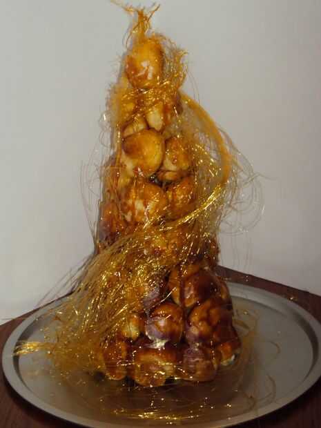 Esto es un postre francés clásico "crujido en la boca". ¡ Impresiona a tus invitados con tu postre increíble!La croquembouche es un plato generalmente se sirve en bodas y fiestas.Es un postre elaborado pero vale la pena el esfuerzo. Para crear u