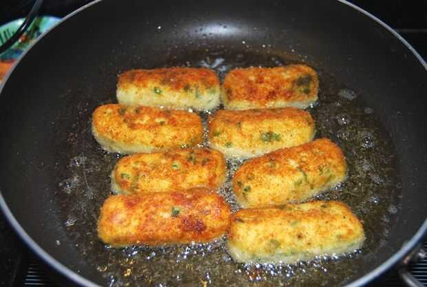 Ahora calentar aceite (aceite de oliva por favor) y freir la croqueta y fuego medio. De un lado