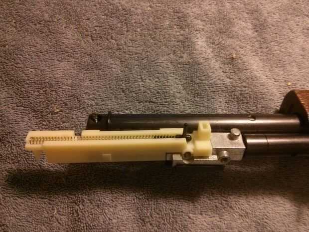Nota: Si usted no planea usar BBs (como erosiona el rifling en el barril) el empujador del BB y la primavera podrían omitirse. Esto haría que este paso sea considerablemente más fácil.