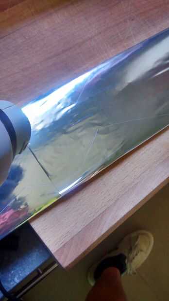 Corte la forma deseada con el hot whire y recortar un espacio para las alas. Luego pulir todo hasta que tenga la forma que desee. Ahora reforzar el cuerpo con scewers. El último paso es cubrir el cuerpo con film retráctil. Ese último paso no es fácil sin experiencia pero el principio es: poner la hoja en el cuerpo y calentar. Puede hacerlo con las alas tan bien, pero es su propia elección. Ahora fije el cuerpo con el resto del avión.