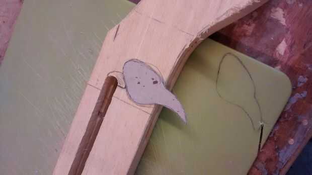Para el gatillo necesita una tabla para cortar plástico. Antes de empezar a cortar el gatillo quieres ser shure que su gatillo actualmente dous es trabajo. Por lo tanto, puede toma un pedazo de cartón y dibuja el gatillo en él. Utilizar una forma que parece como el de la imagen. La tarea del disparador empuja la cadena fuera de la corte tan shure hacen que la forma y la colocación es correcta. Además de buscar el lugar adecuado para el eje que pasa a través del gatillo. Cuando has encontrado que el lugar adecuado para el árbol, perfore un agujero canal del cardbord y troough el cuerpo de la crosbow. Ahora utilice el formulario de la forma para dibujar la forma del gatillo en el plástico y cortar con una sierra de calar. Dril a través del orificio del gatillo y el gatillo en la ranura del gatillo con un árbol. Usted puede poner tapones antes y después del gatillo como se puede ver en la imagen pero no son realmente necesarios.