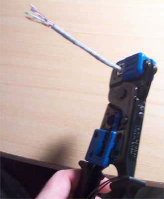Una vez los cables en el enchufe, inserte el conjunto < Guillermo-colgado-voz >-bang < / voz Guillermo colgado > en su herramienta de la encrespadura.